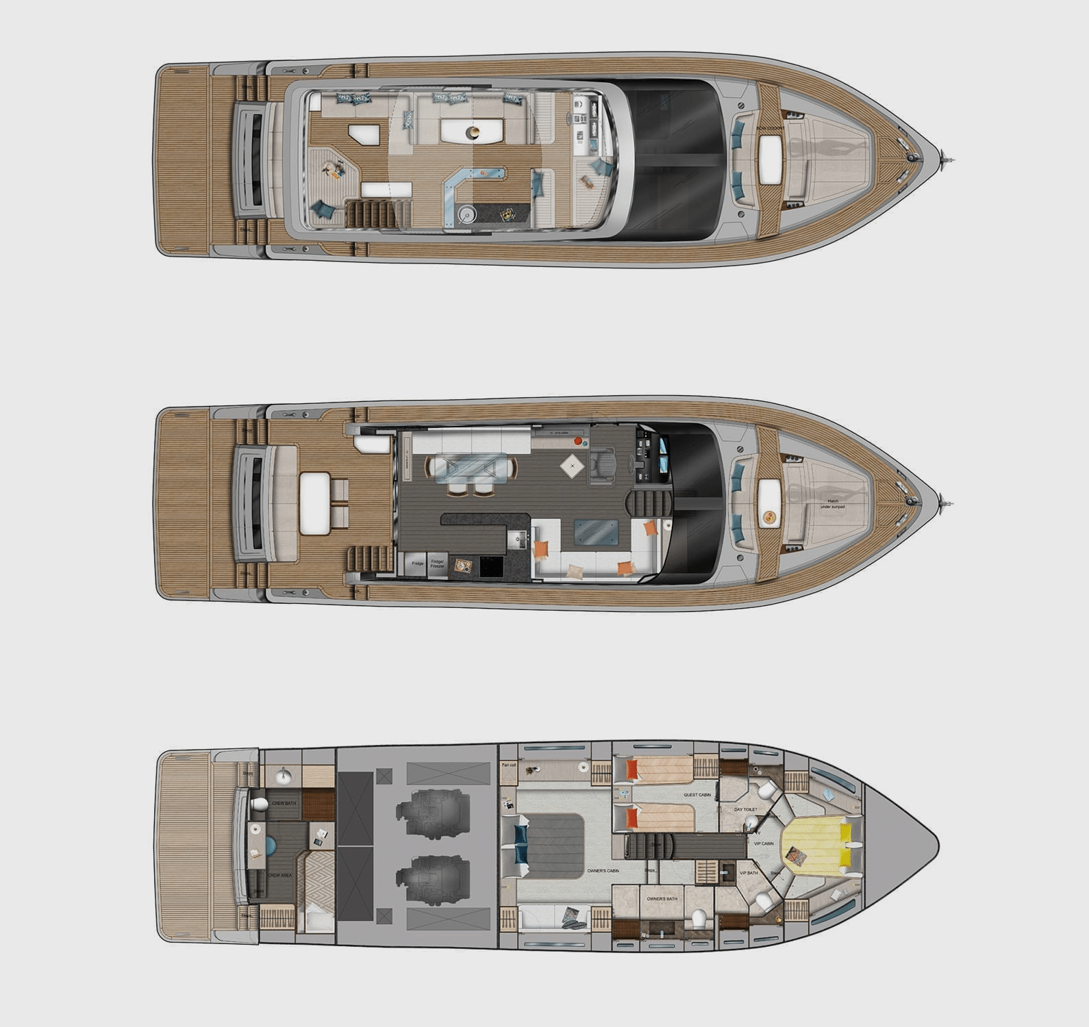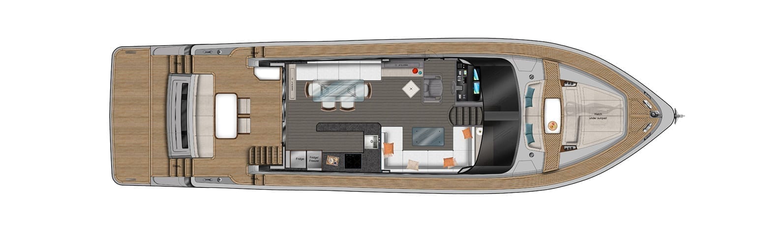 Each Capri offers three levels of access from the staterooms, salon, and the flybridge – each offering flexibility for extended excursions in comfort.