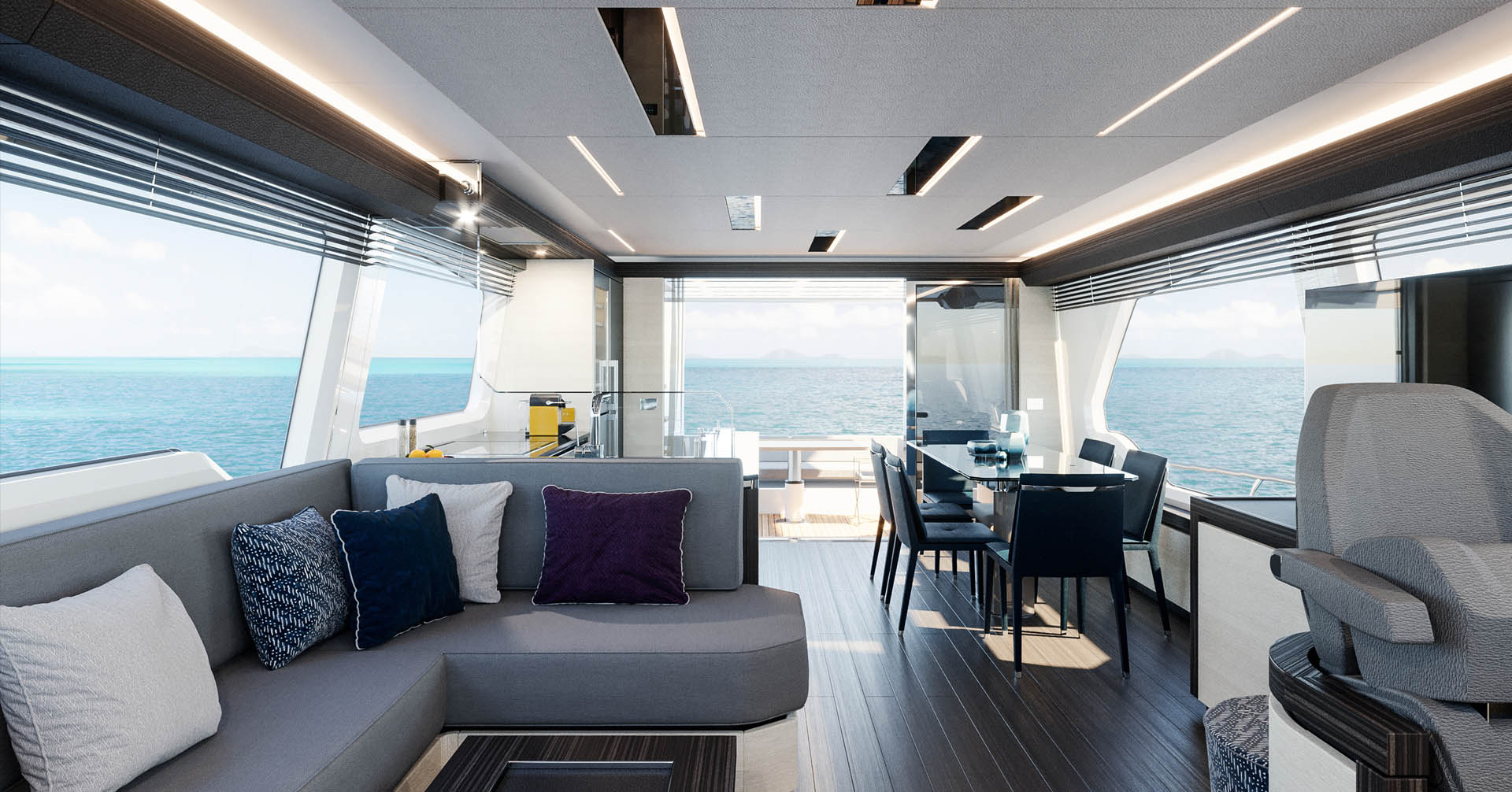 Large expansive living areas, with ample galley appliances, and storage make living & entertaining aboard effortless.